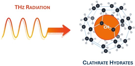 - Di Profio, P.; Canale, V.; Ciulla, M.; Fontana, A.; Madia, L.; Zampato, M.; Carminati, S. Terahertz Irradiation of Liquid Water Inhibits Methane Hydrate Formation. ACS Sustain. Chem. Eng. 2022, 10, 4780–4787. [Google Scholar] [CrossRef]