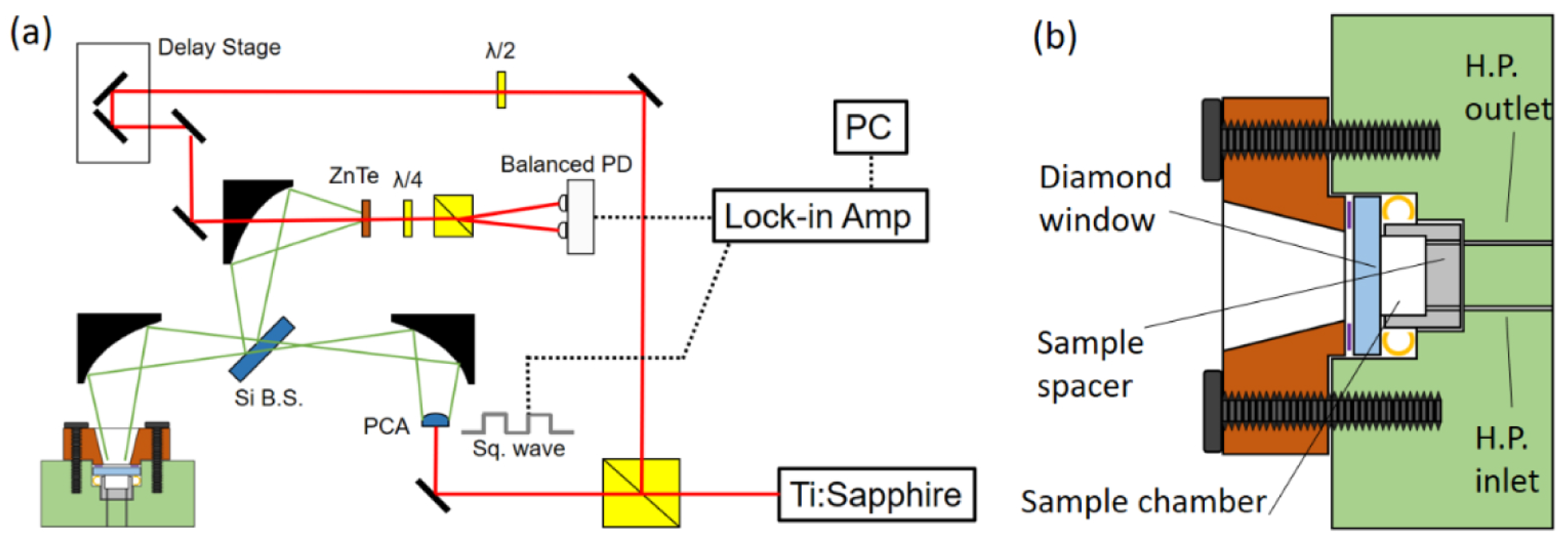 - Zhang, W.; Nickel, D.; Mittleman, D. High-pressure cell for terahertz time-domain spectroscopy. Opt. Express 2017, 25, 2983–2993. [Google Scholar] [CrossRef] [PubMed]