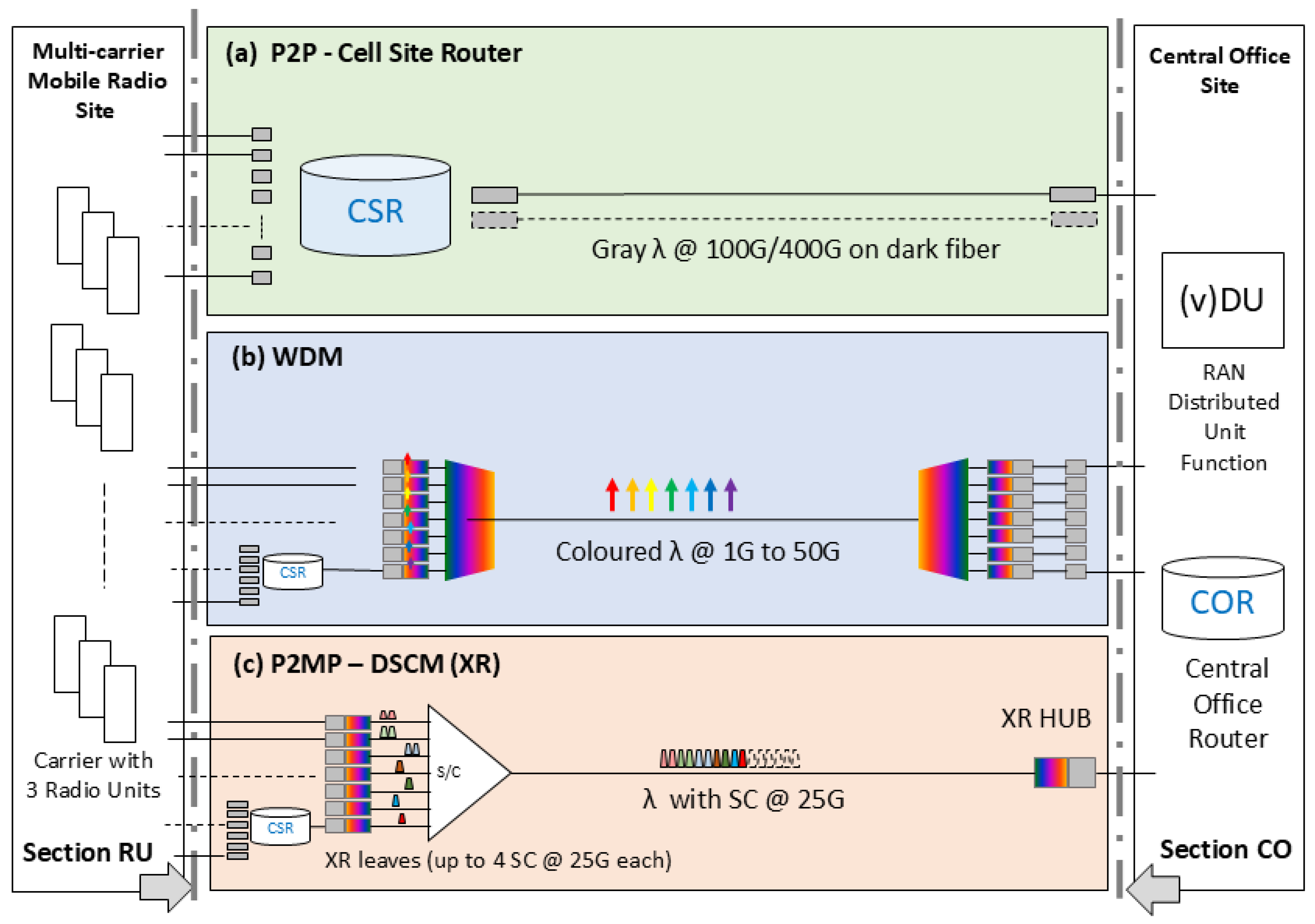- O-RAN ALLIANCE Specification O-RAN.WG9.XTRP-REQ-v01.00, O-RAN Open Xhaul Transport Working Group 9, Xhaul Transport Requirements, Feb. 2021. Available online: https://orandownloadsweb.azurewebsites.net/specifications/ (accessed on 2 October 2025).