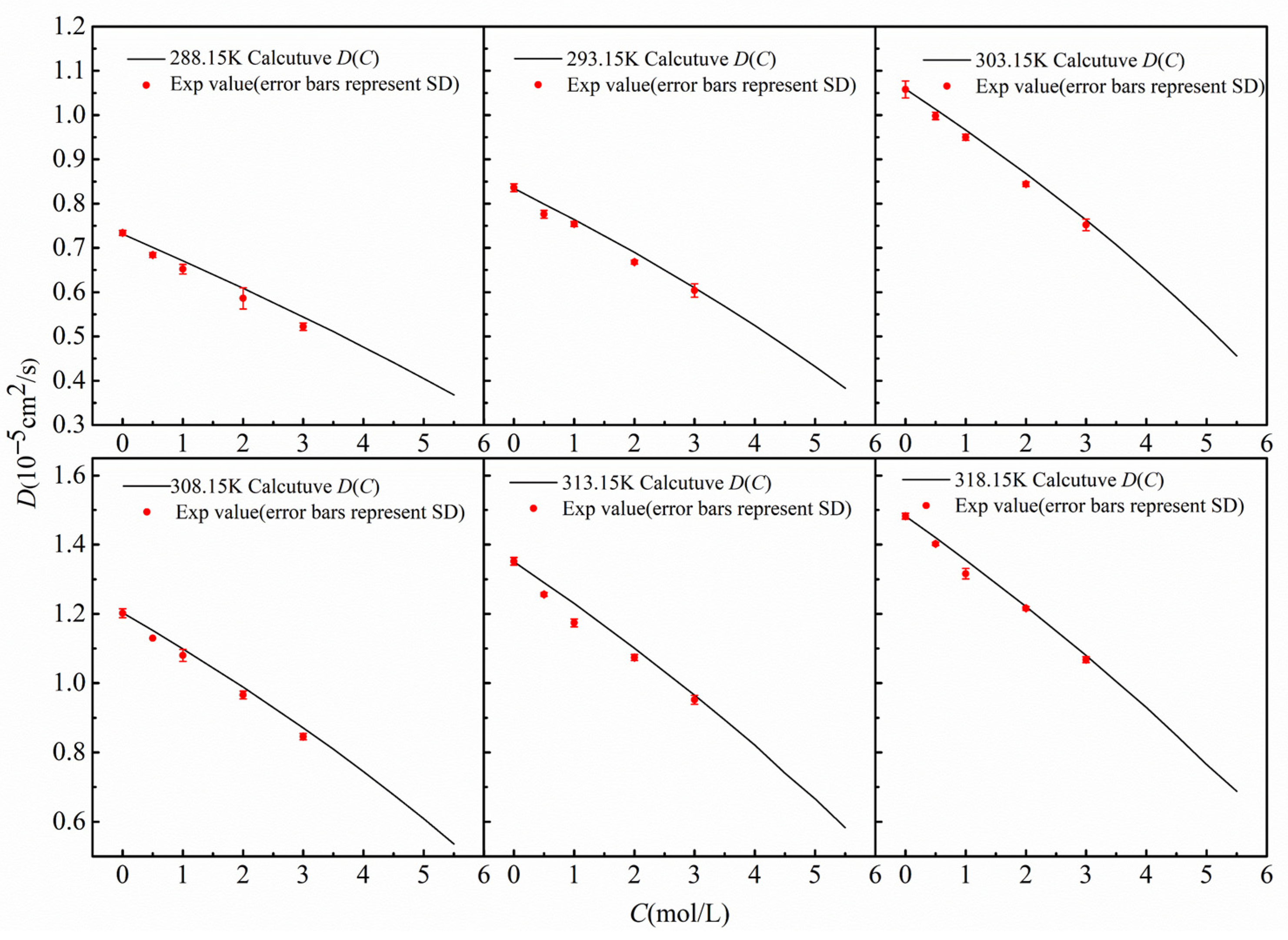 Table 5. D(C) relationship from 288.15 K to 318.15 K.