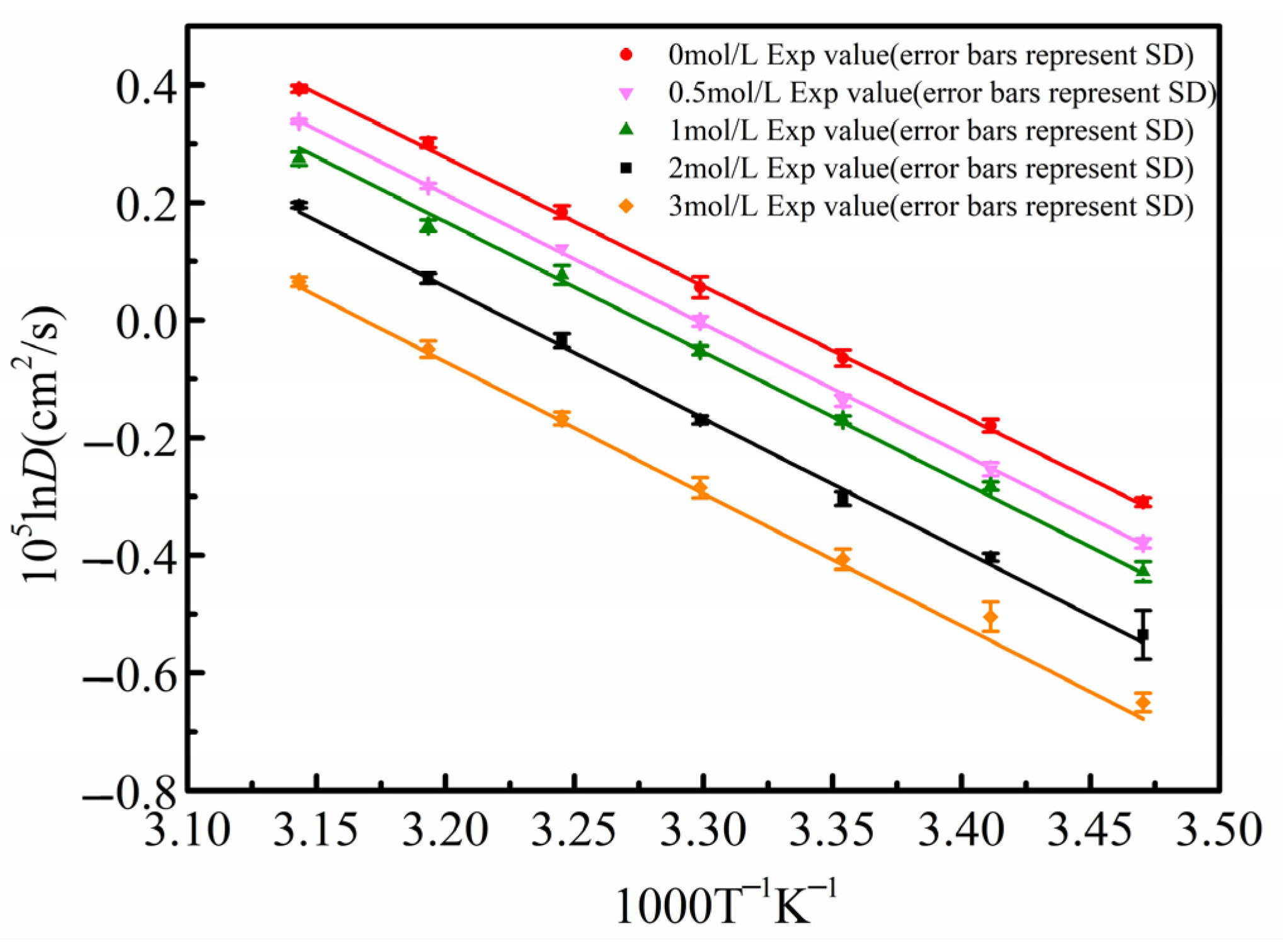 Table 6. Arrhenius formula coefficients of diffusion coefficients of β-alanine aqueous solutions at different concentrations.