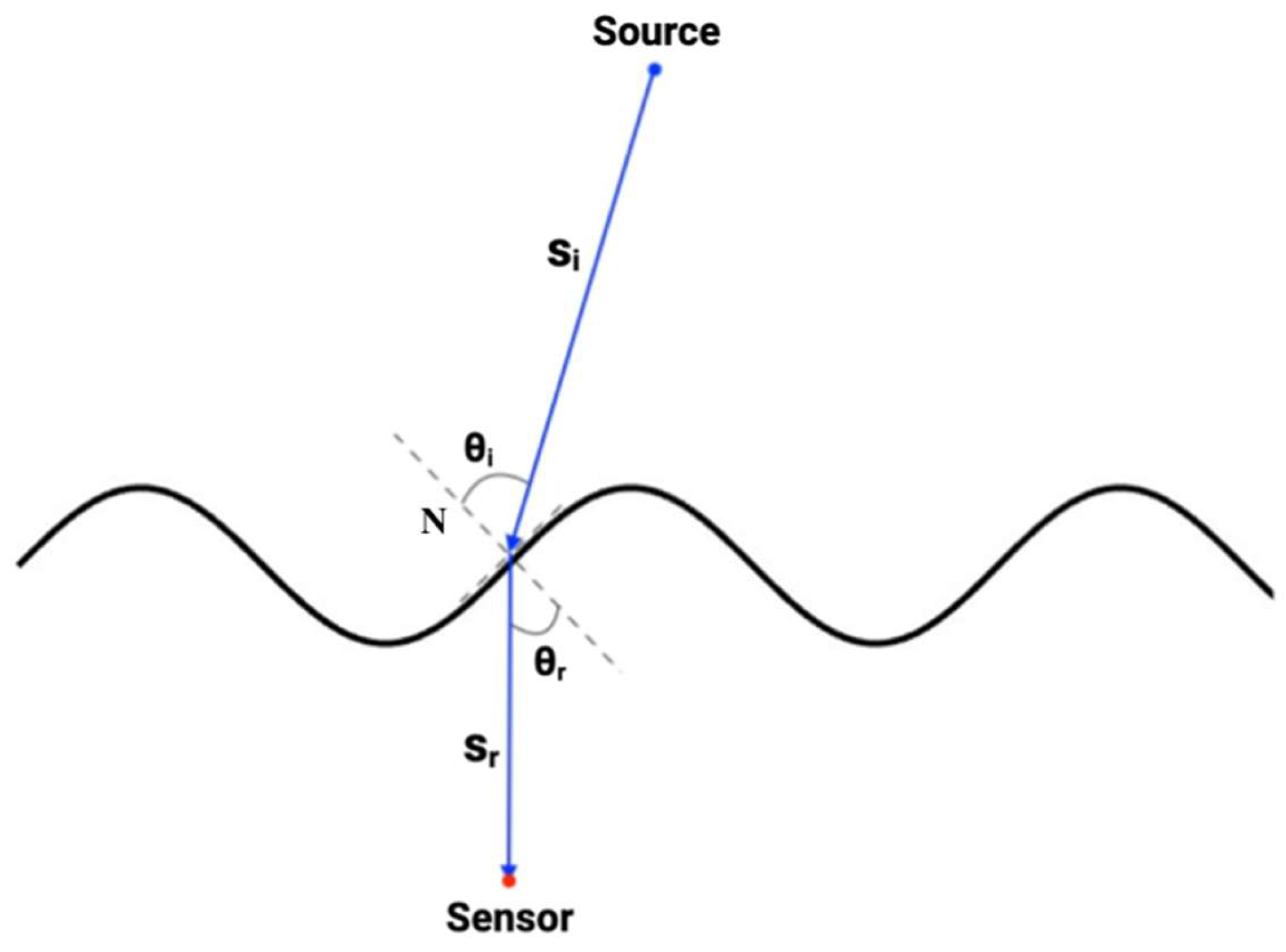 | Algorithm 1 Ray–Tracing through a Wavy Air–Water Interface |