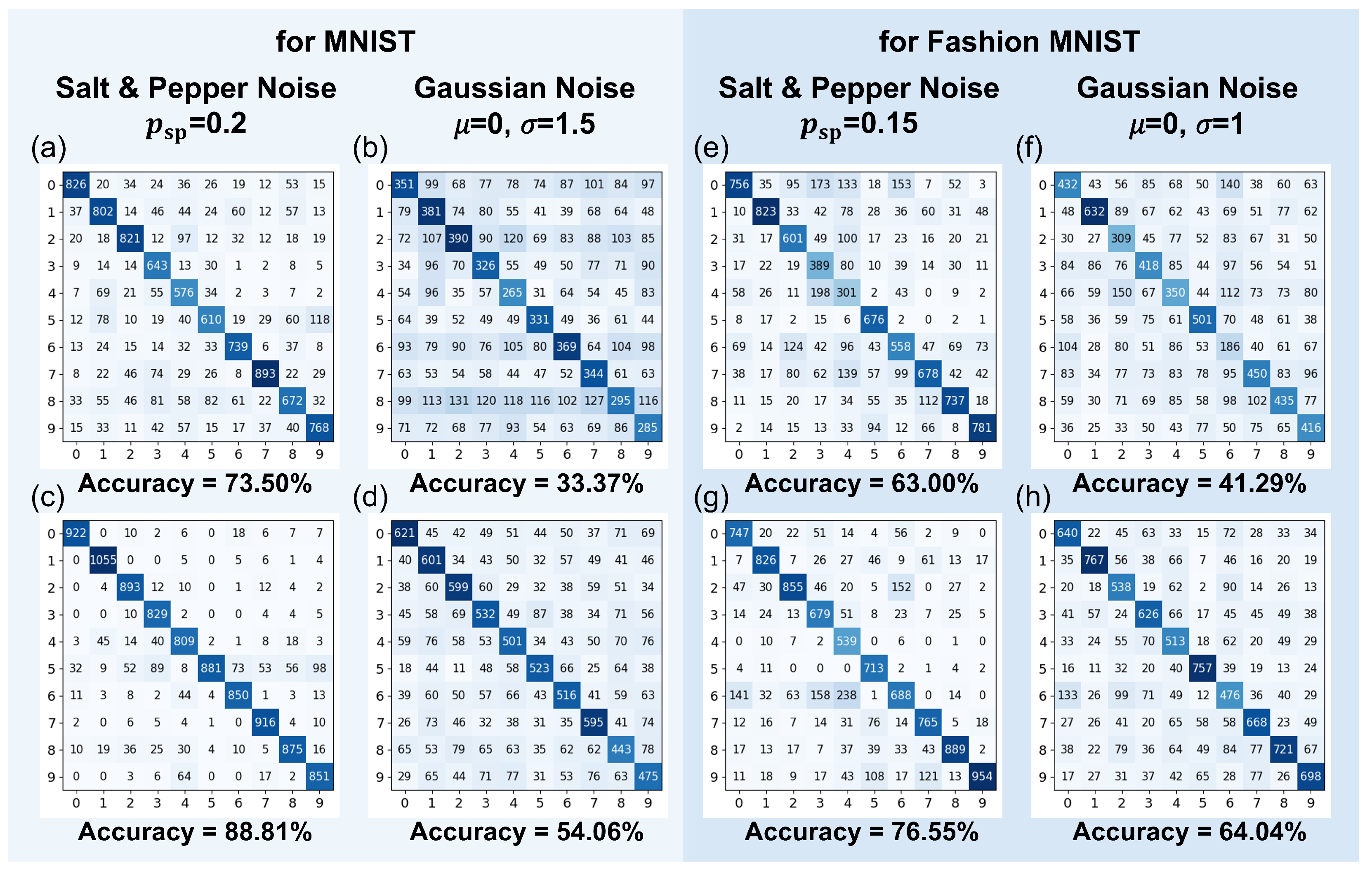- Shi, J.; Chen, M.; Wei, D.; Hu, C.; Luo, J.; Wang, H.; Zhang, X.; Xie, C. Anti-noise diffractive neural network for constructing an intelligent imaging detector array. Opt. Express 2020, 28, 37686–37699. [Google Scholar] [CrossRef]