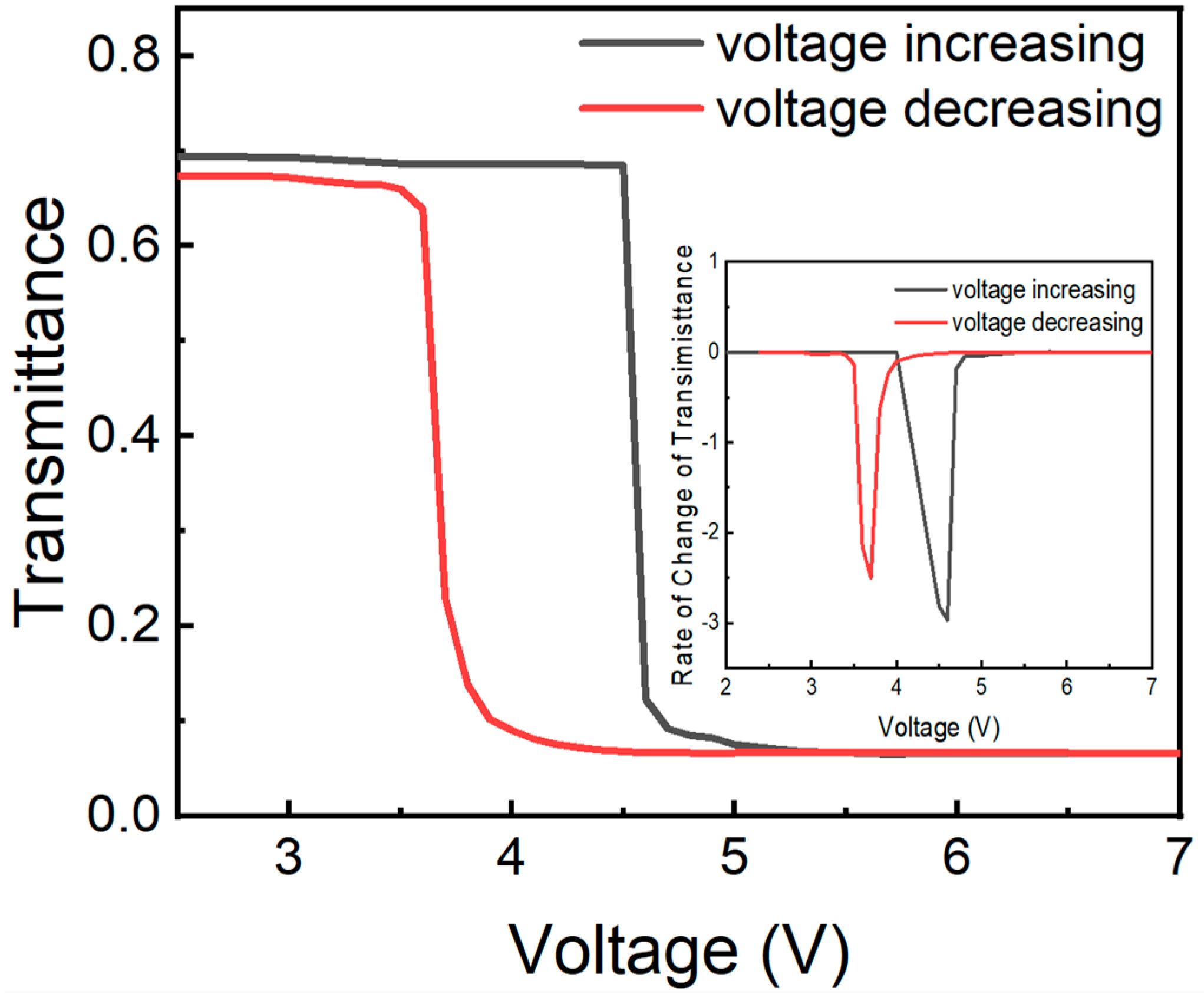 | VO2/ITO film | 1.4 V (electrical) | 0.24 ms/2.1 ms | 35% | Not specified | Low threshold voltage Fast response Small-scale device | [25] |