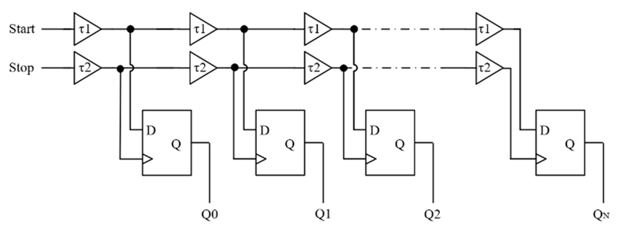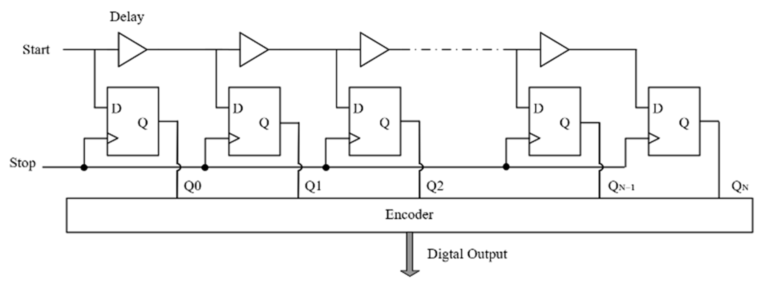 Figure 3: Maps the time interval to delay stages through cascaded delay units, outputting digital codes via decoding. Its limitation is that PVT variations induce mismatch and nonlinearity errors in delay units, and expanding the dynamic range leads to a significant increase in area and power consumption [