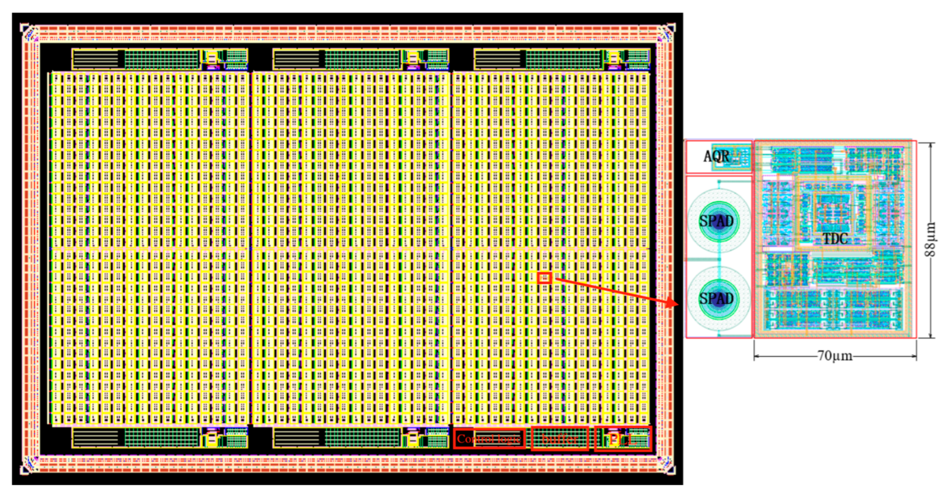 Independent design of 16 × 16 subarrays adopts independent timing control, power domain and data readout path. When expanding, only the number of subarrays is required, and there is no need to reconstruct the core circuit to ensure the consistency of performance of each TDC unit.