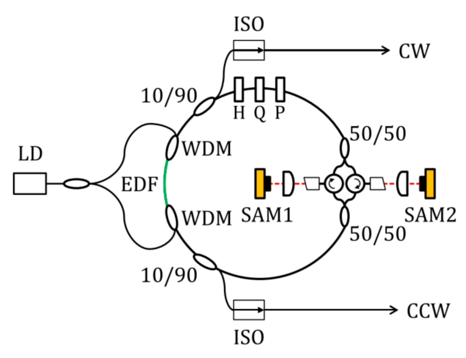- Li, R.; Shi, H.; Tian, H.; Li, Y.; Liu, B.; Song, Y.; Hu, M. All-polarization-maintaining dual-wavelength mode-locked fiber laser based on Sagnac loop filter. Opt. Express 2018, 26, 28302–28311. [Google Scholar] [CrossRef]