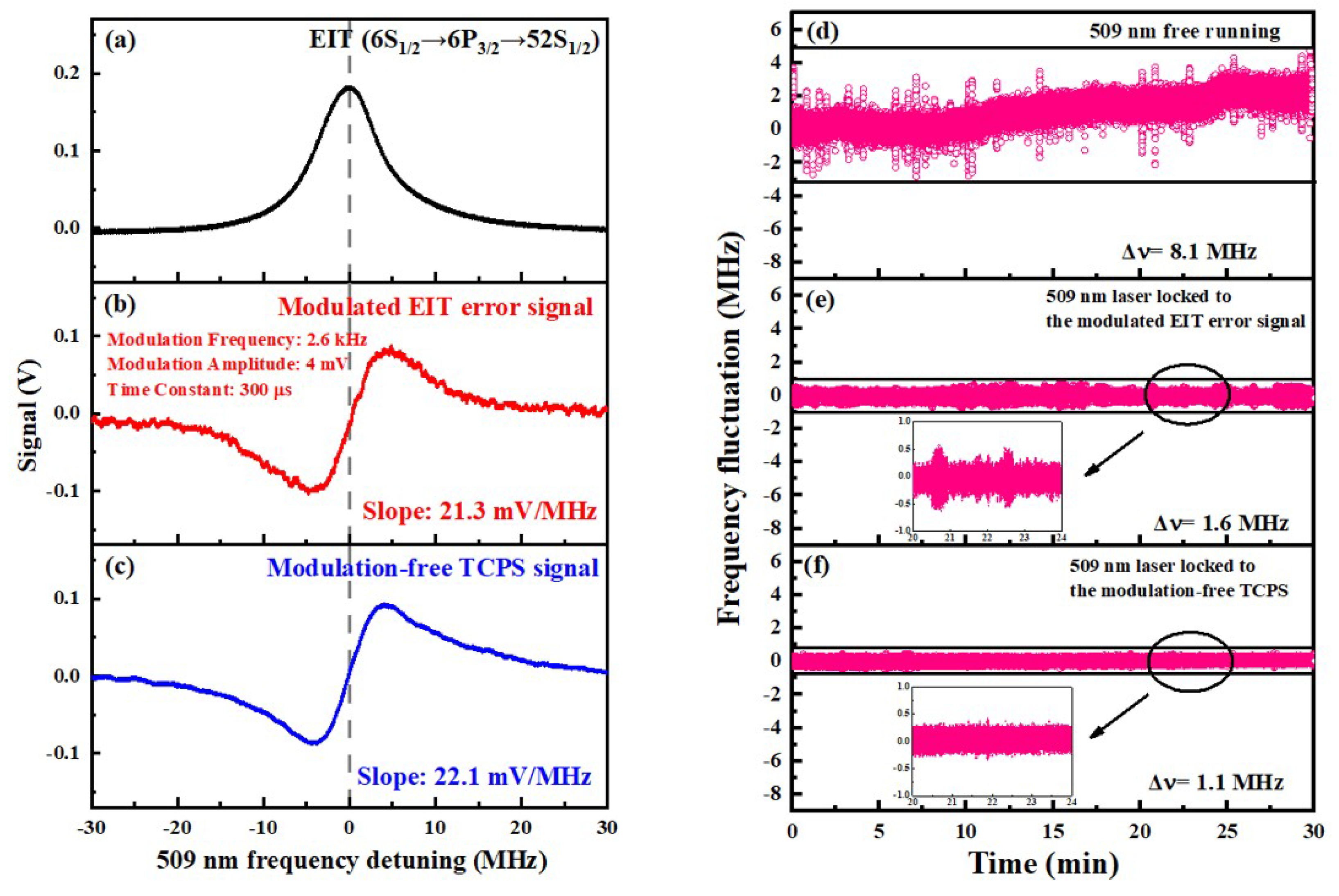 - Jiao, Y.C.; Li, J.K.; Wang, L.M.; Zhang, H.; Zhang, L.J.; Zhao, J.M.; Jia, S.T. Laser frequency locking based on Rydberg electromagnetically induced transparency. Chin. Phys. B 2016, 25, 053201. [Google Scholar] [CrossRef]