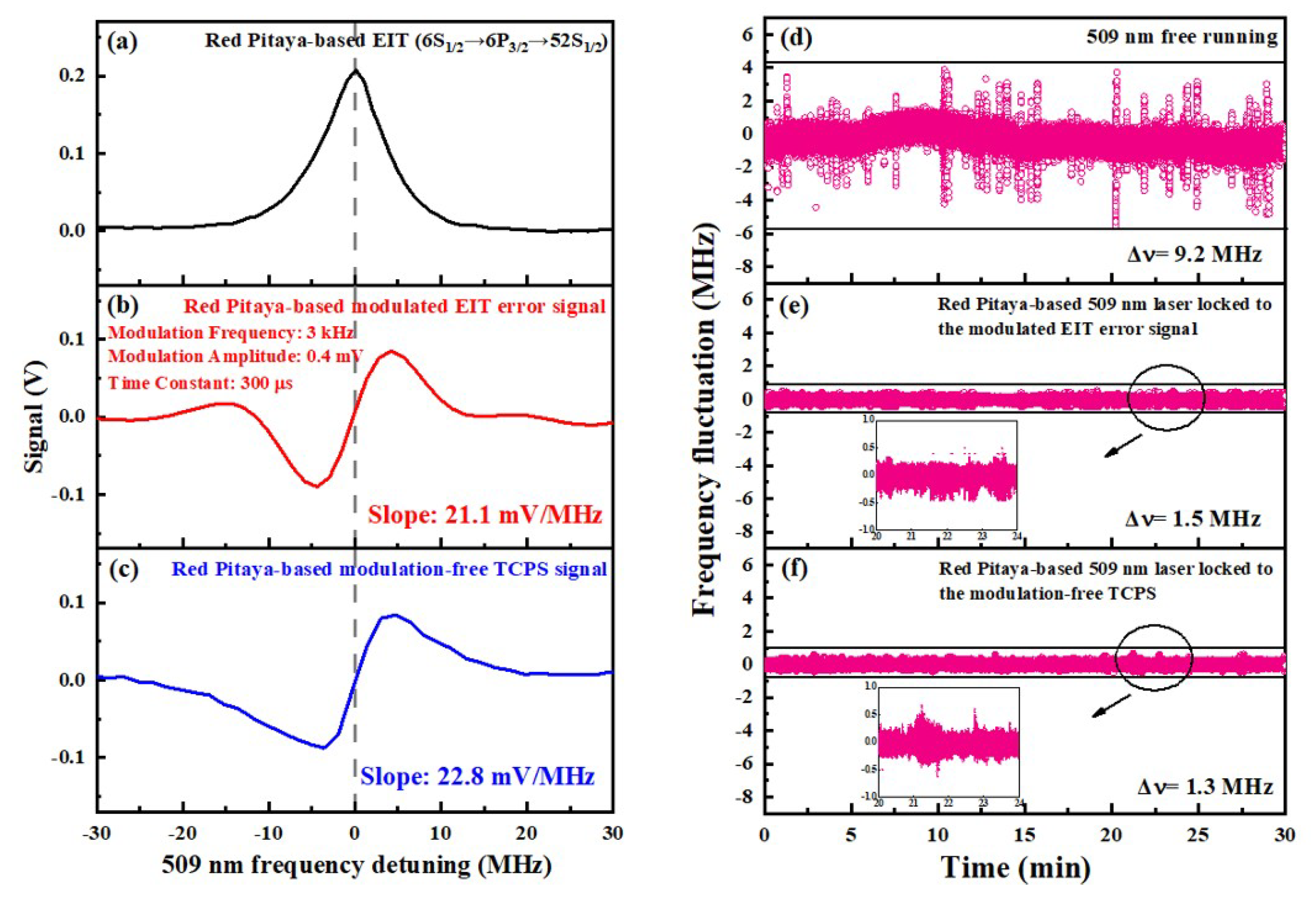 3.3. Frequency-Locking 509 nm Laser Based on Red Pitaya FPGA Module