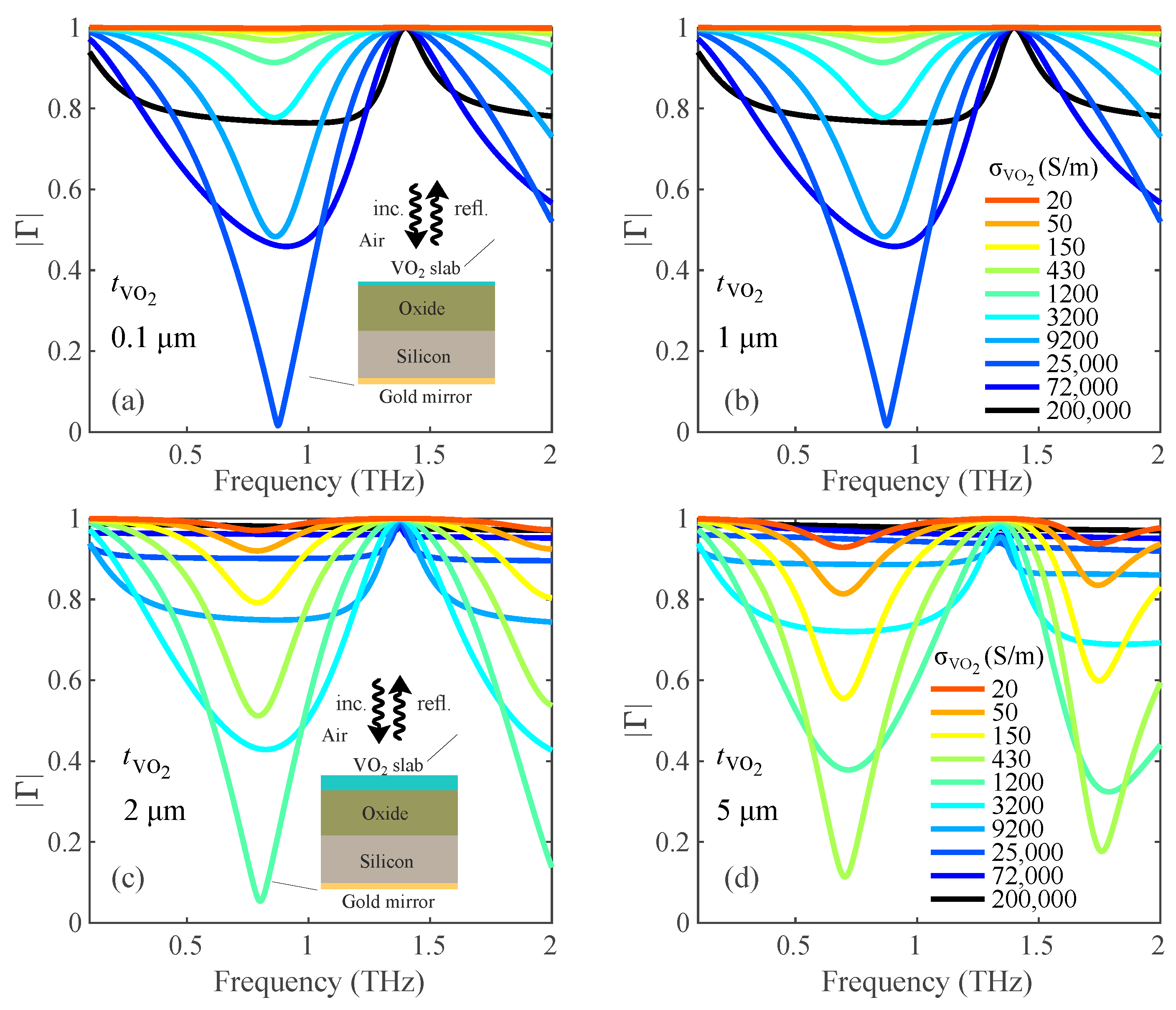 - Zou, W.; Zhong, C.; Hong, L.; Lei, J.; Shen, Y.; Deng, X.; Chen, J.; Guo, T. Switchable Vanadium Dioxide Metasurface for Terahertz Applications. Micromachines 2024, 15, 967. [Google Scholar] [CrossRef]