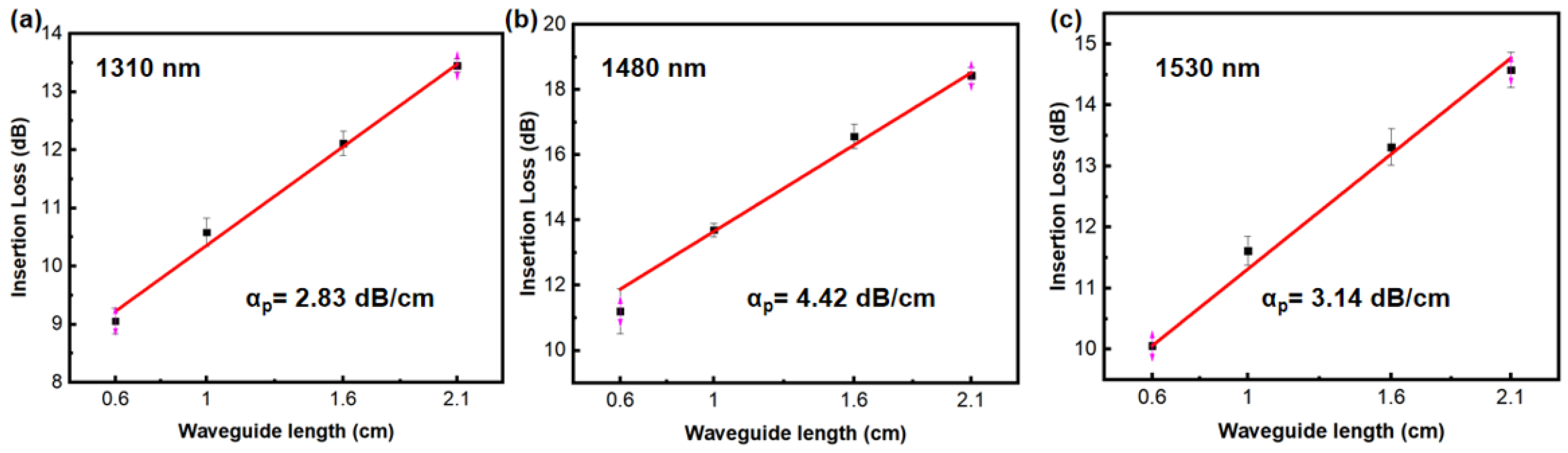 - Tao, S.; Song, H.; Zhao, D.; Yang, Y.; Wang, S.; Yan, J.; Wei, J.; Wang, X.; Qin, G.; Wang, F.; et al. Strip loaded waveguide amplifiers based on erbium-doped nanocomposites with 17 dB internal net gain. Opt. Express 2024, 32, 7931–7939. [Google Scholar] [CrossRef] [PubMed]