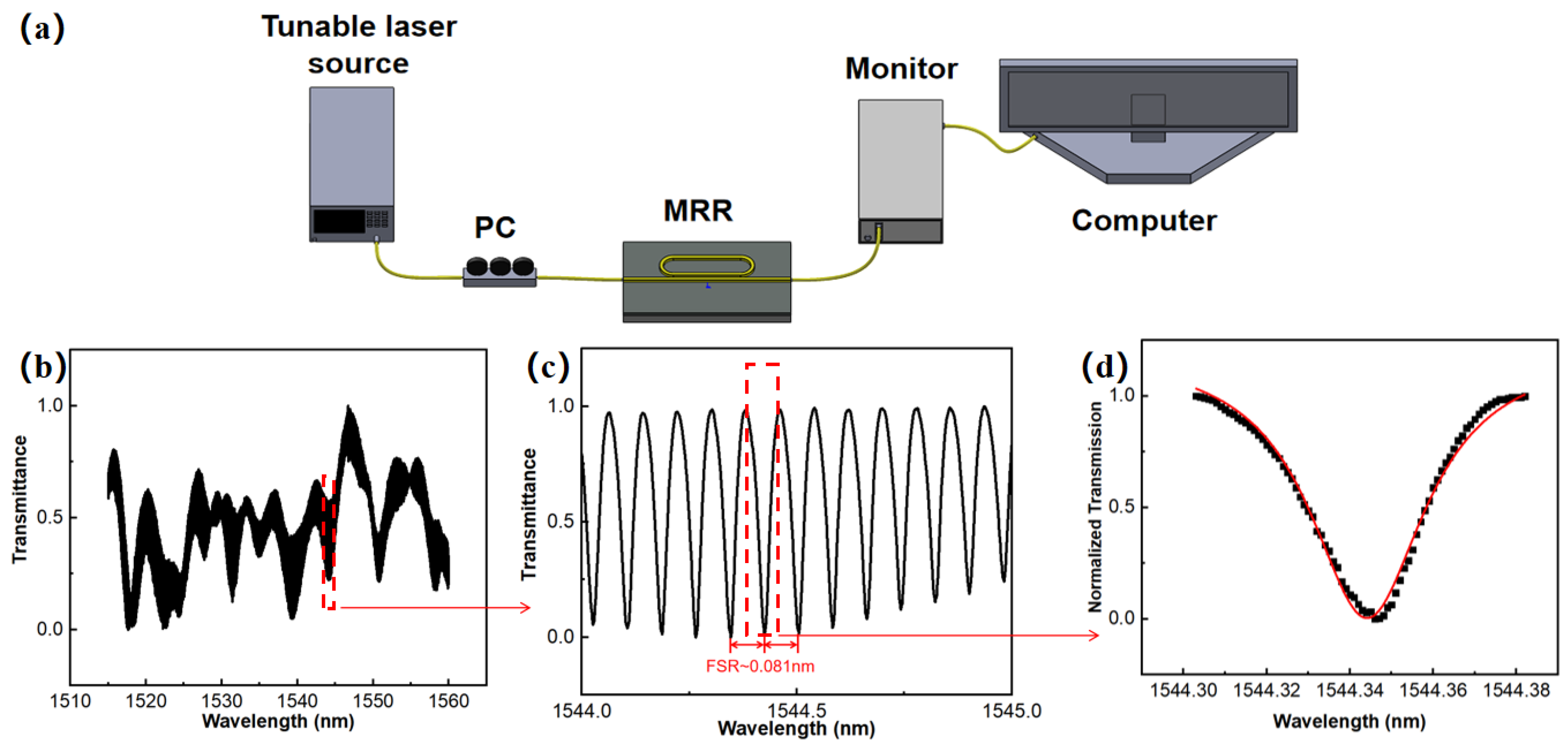 - Guo, R.; He, Q.; Zhang, Z.; Xu, Y.; Zhang, S.; Lang, Q.; Xiao, S.; Han, P.; Wang, J.; Ding, T.; et al. High-Q silicon microring resonator with ultrathin sub-wavelength thicknesses for sensitive gas sensing. Appl. Phys. Rev. 2024, 11, 021417. [Google Scholar] [CrossRef]