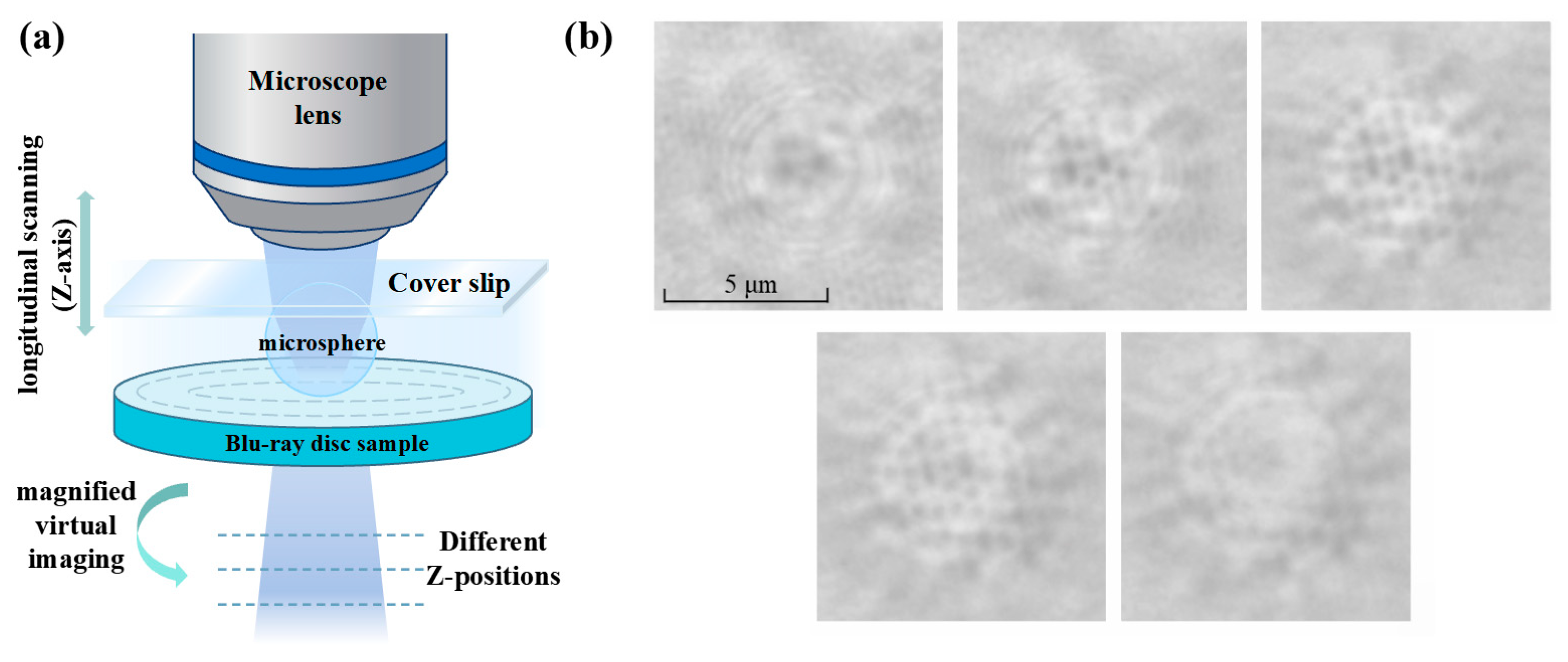 - Jiang, W.; Wang, J.; Yang, Y.; Bu, Y. A Review of Microsphere Super-Resolution Imaging Techniques. Sensors 2024, 24, 2511. [Google Scholar] [CrossRef]