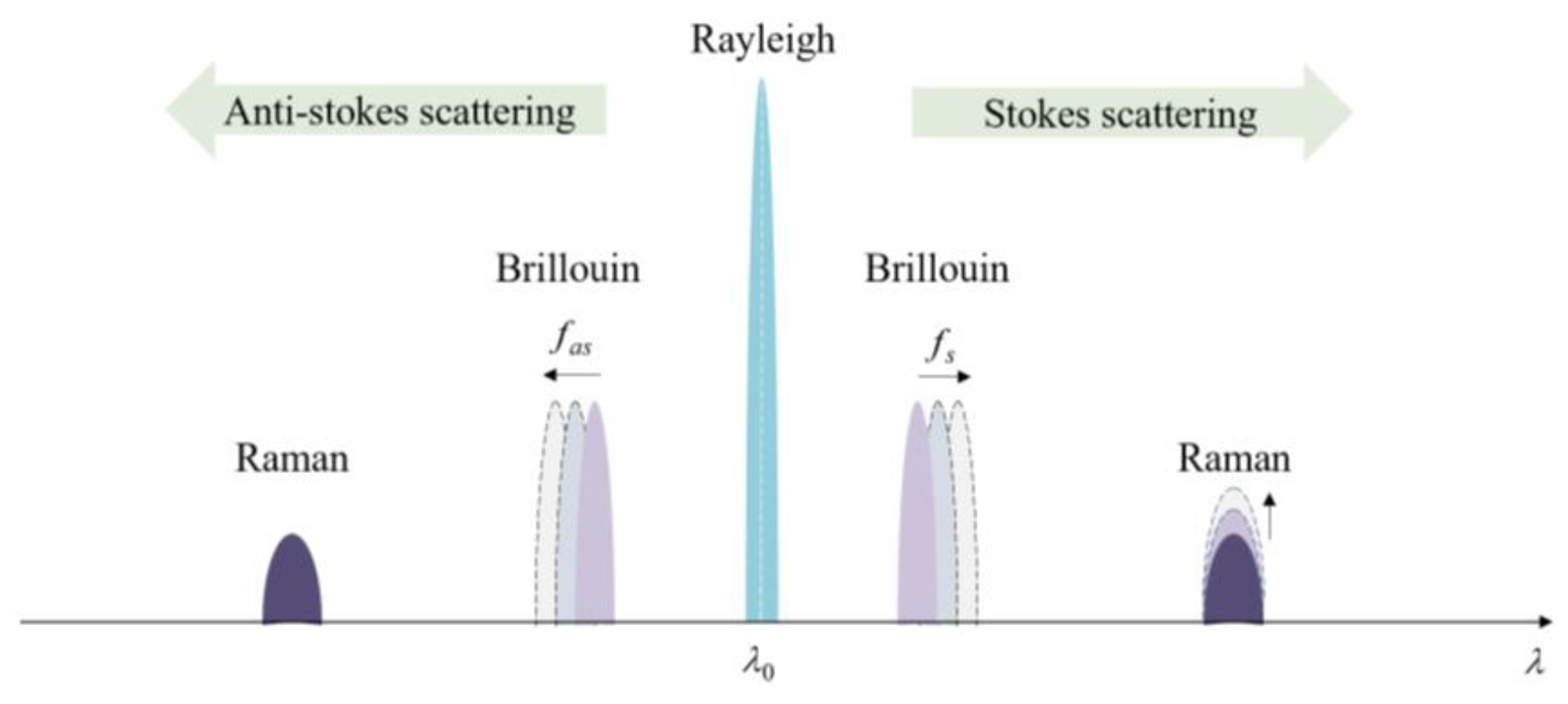 | Brillouin scattering | Frequency Shift | BOTDR | Temperature, strain, etc. | Temperature or strain measurement |