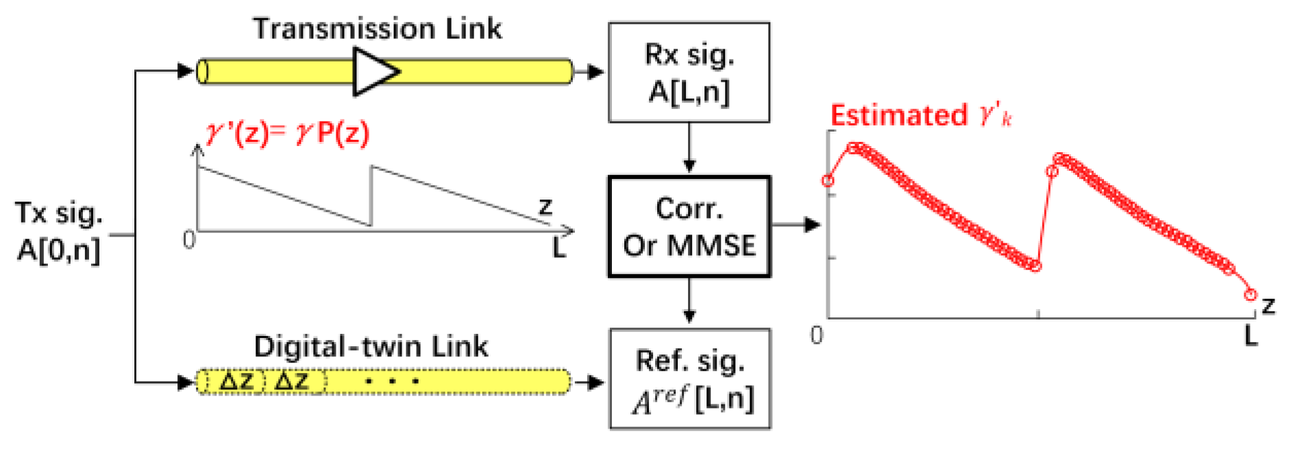 - Sasai, T.; Sone, Y.; Yamazaki, E.; Nakamura, M.; Kisaka, Y. A generalized method for fiber-longitudinal power profile estimation. In Proceedings of the 49th European Conference on Optical Communications (ECOC 2023), Glasgow, Scotland, 1–5 October 2023. [Google Scholar]