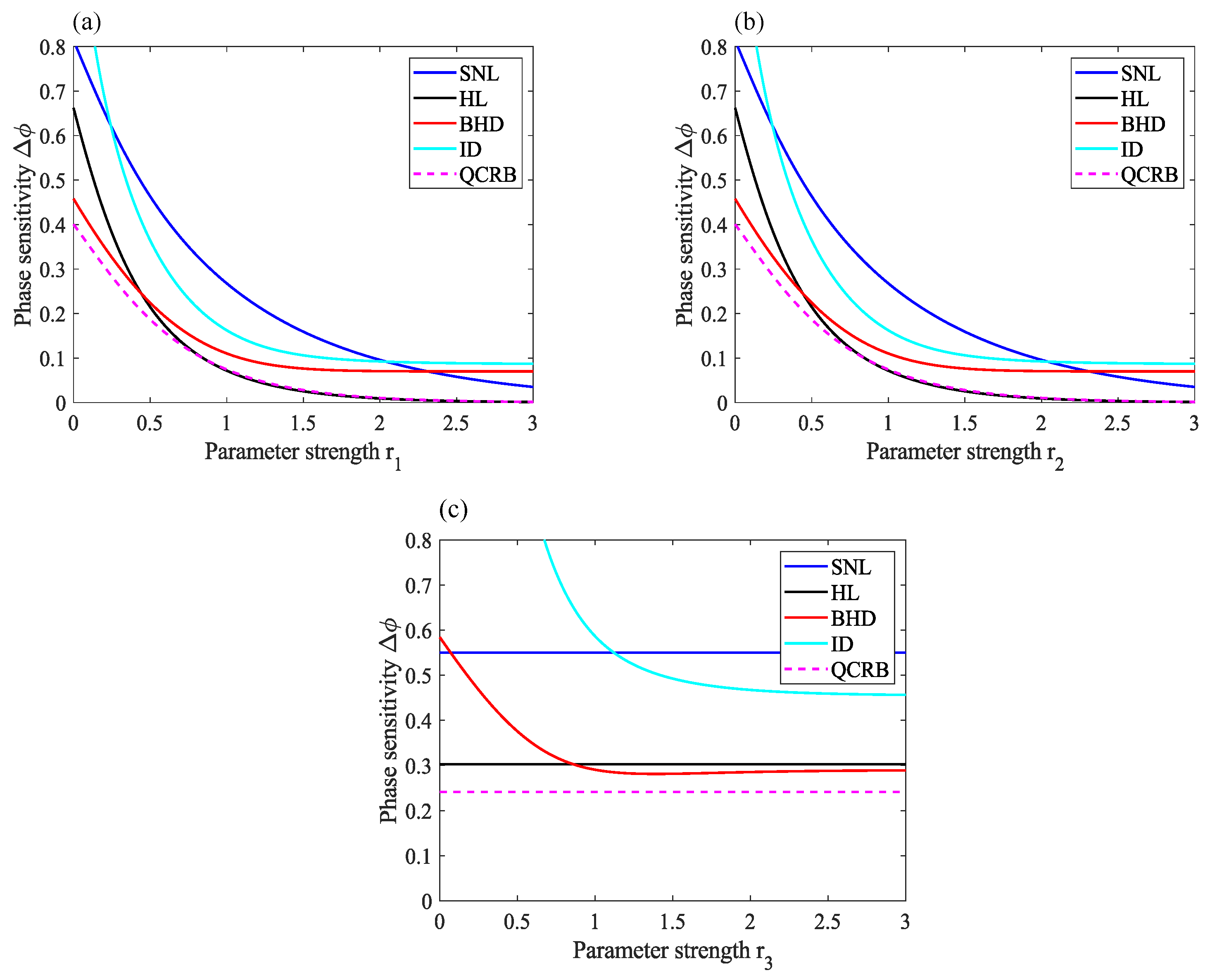 11]. Therefore, all possible methods need to be employed to have the optimal phase sensitivity. Nevertheless, considering endless detection methods is impractical. Fortunately, this challenge can be effectively tackled by employing quantum Fisher information (QFI) and quantum Cramér–Rao bounds (QCRB),