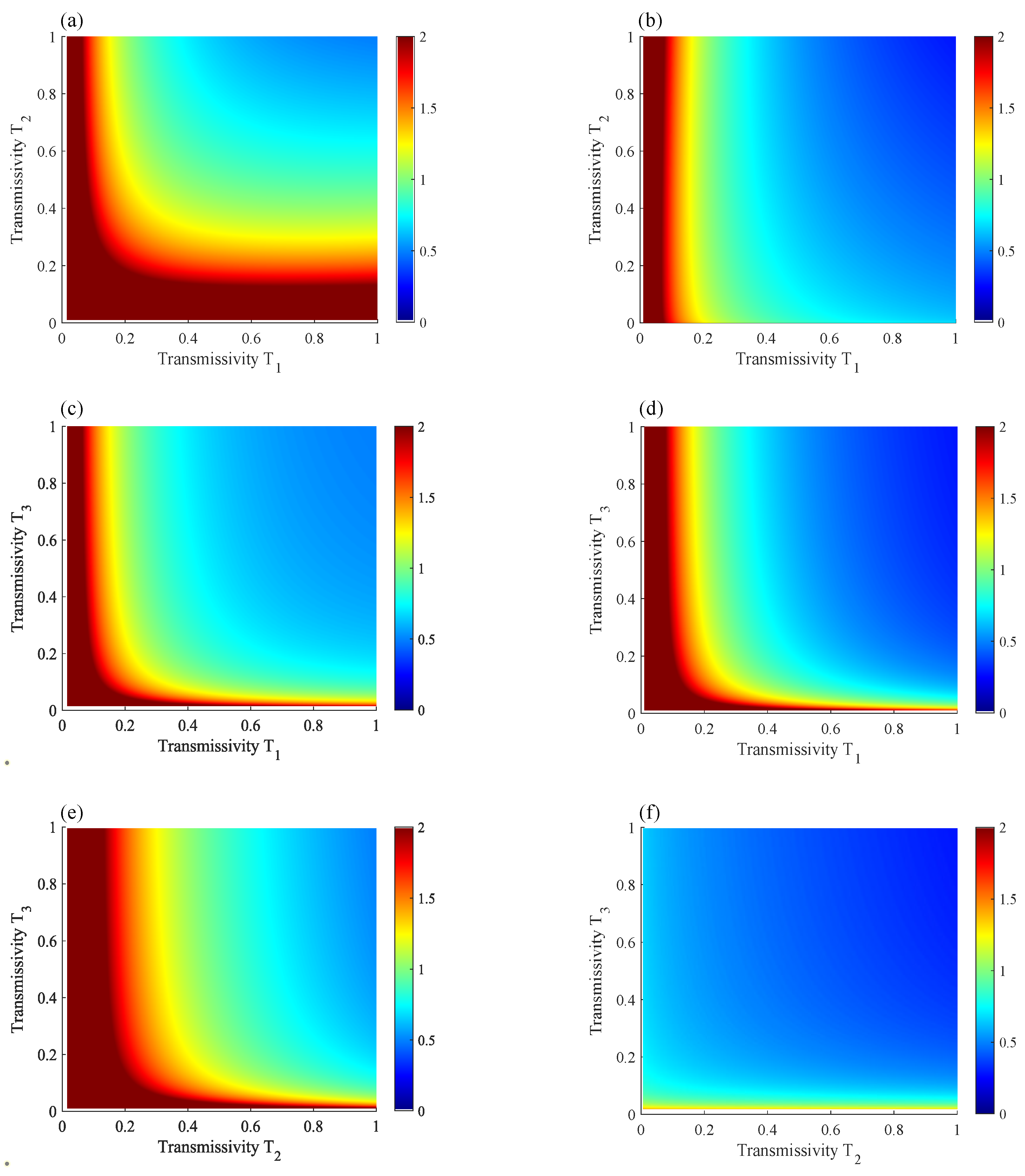 Figure 7, we indicate the effects of the internal and external losses on the phase sensitivity. The phase sensitivity with BHD is better than that with ID when the loss is the same. In addition, for the phase sensitivity with BHD and ID, better phase sensitivity can be obtained by the larger transmission. For