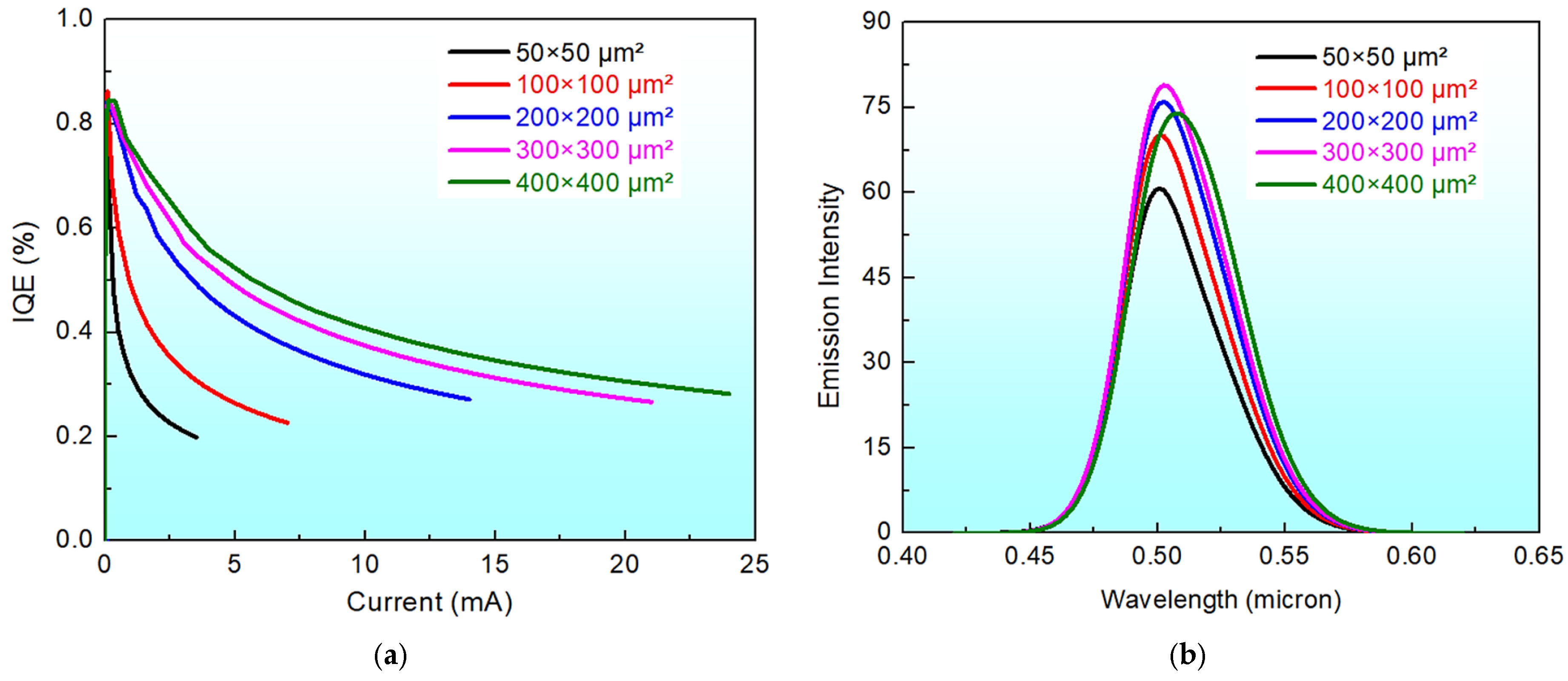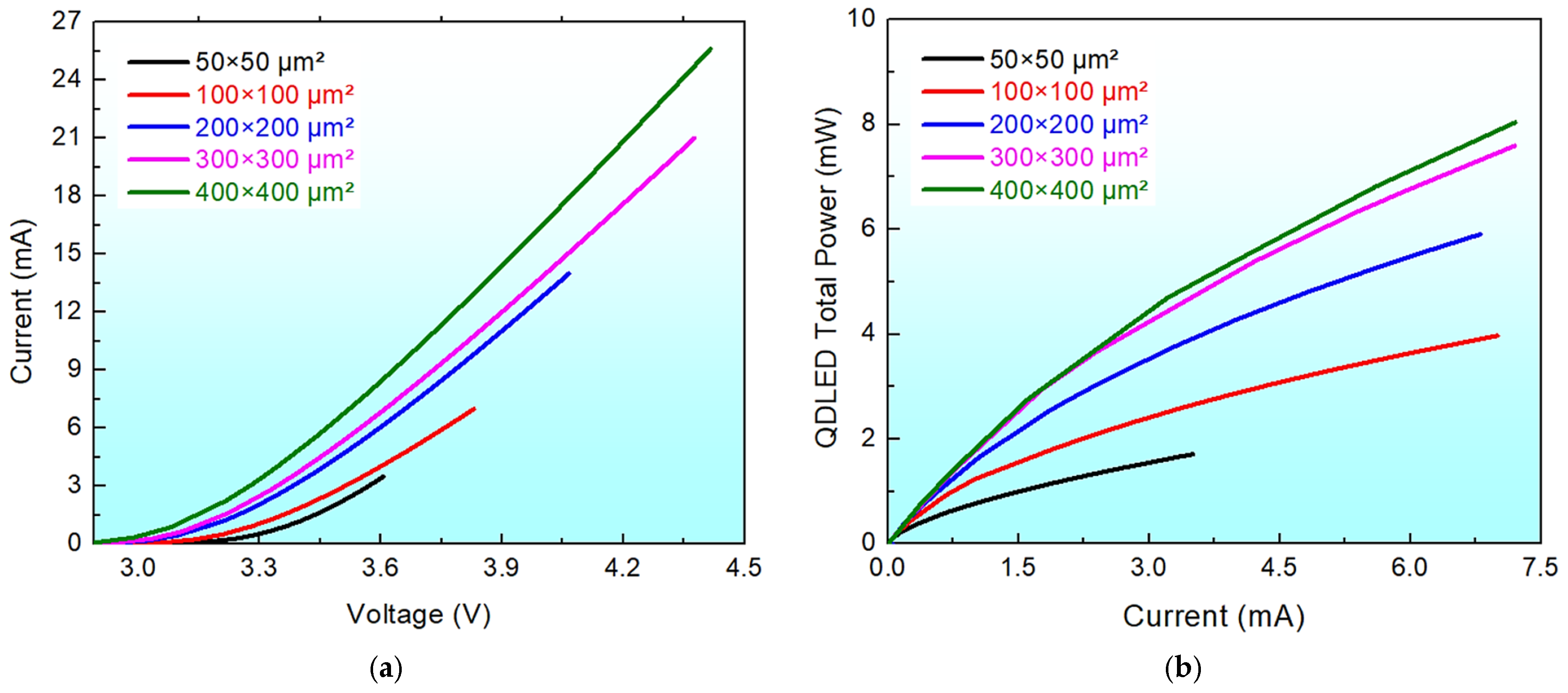 3.1. Impact of Device Dimensions on InGaN QDLED Performance