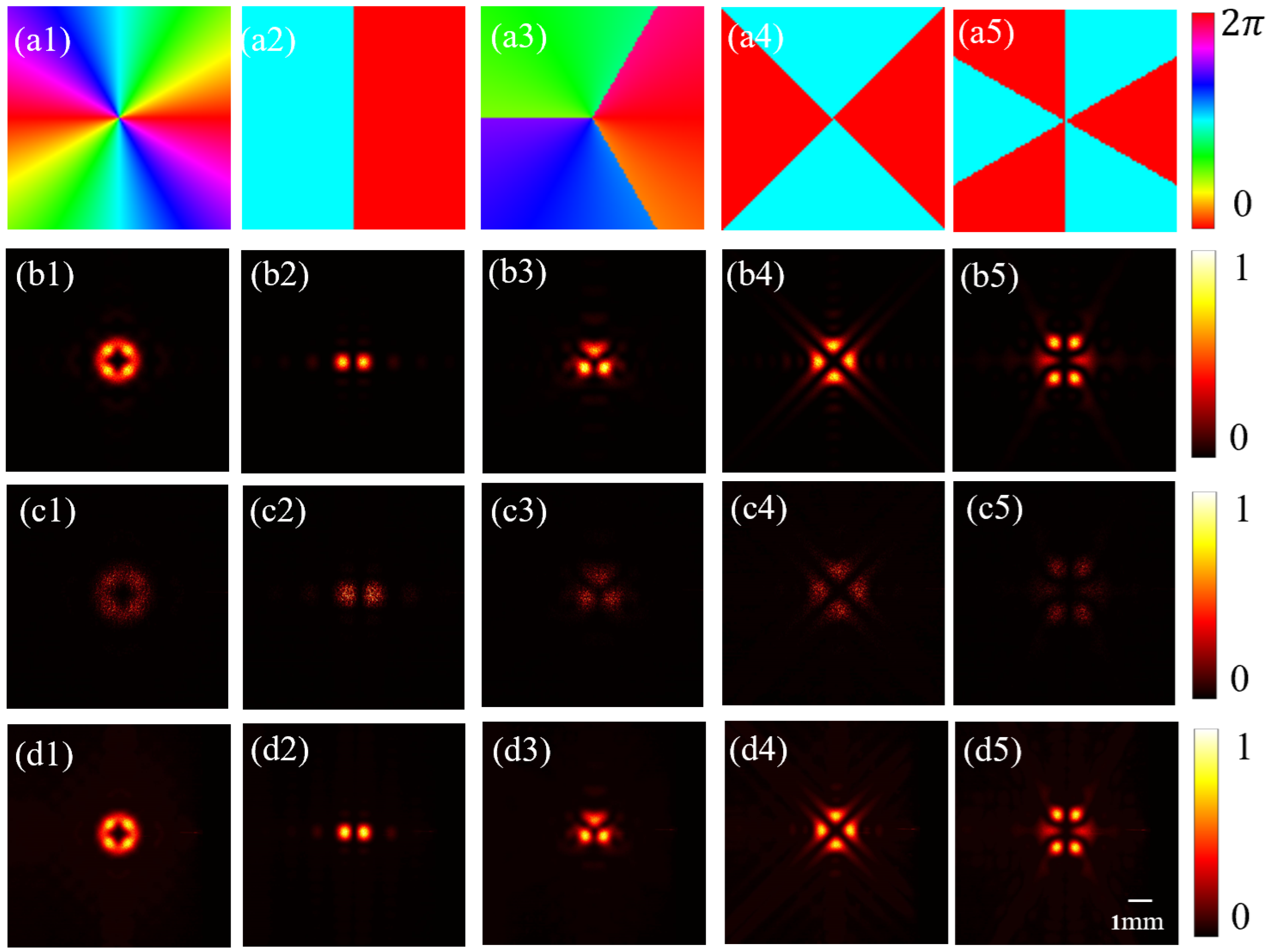 Figure 6(c1–c5) show experimental results of single-shot reshaped speckle and
