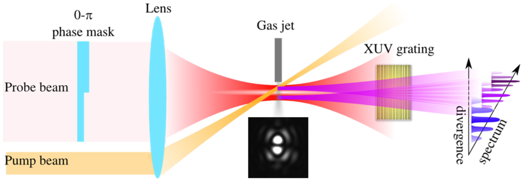 - Gariepy, G.; Leach, J.; Kim, K.T.; Hammond, T.J.; Frumker, E.; Boyd, R.W.; Corkum, P.B. Creating High-Harmonic Beams with Controlled Orbital Angular Momentum. Phys. Rev. Lett. 2014, 113, 153901. [Google Scholar] [CrossRef] [PubMed]