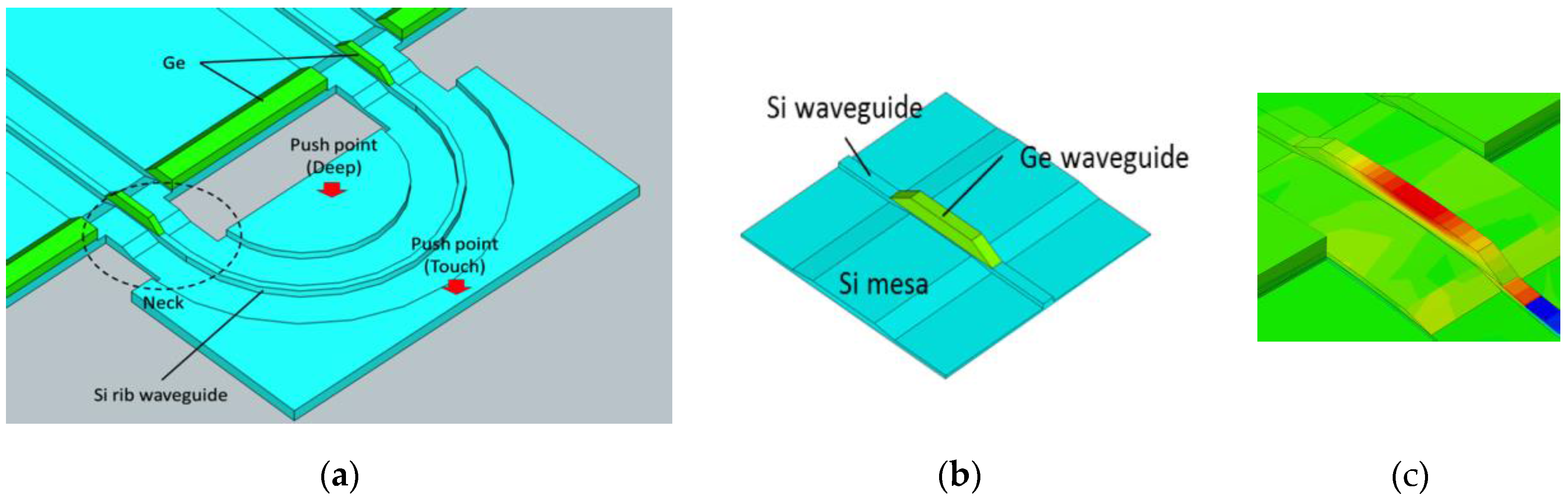 2.2. Design of Ge Waveguide on Si Beam Structure and Stress