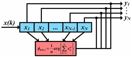 As an n-th power feed-forward carrier phase recovery approach, which is schematically shown in Figure 3, the block-wise average algorithm calculates the n-th power of the received symbols to remove the information of the modulated phase in the n-PSK coherent transmission systems, and the computed phase (n-th power) data are summed and averaged over a certain block. The averaged phase value is then divided over n, and the final result is regarded as the estimated phase for the received symbols within the entire block [29,30]. For the n-PSK coherent optical communication systems, the estimated carrier phase for each process block using the block-wise average algorithm can be expressed as:
