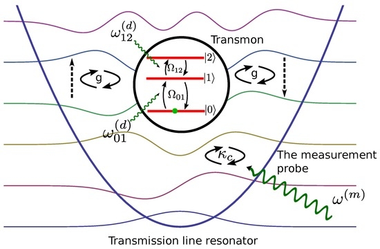 - Peterer, M.J.; Bader, S.J.; Jin, X.; Yan, F.; Kamal, A.; Gudmundsen, T.J.; Leek, P.J.; Orlando, T.P.; Oliver, W.D.; Gustavsson, S. Coherence and Decay of Higher Energy Levels of a Superconducting Transmon Qubit. Phys. Rev. Lett. 2015, 114, 010501. [Google Scholar] [CrossRef] [PubMed]