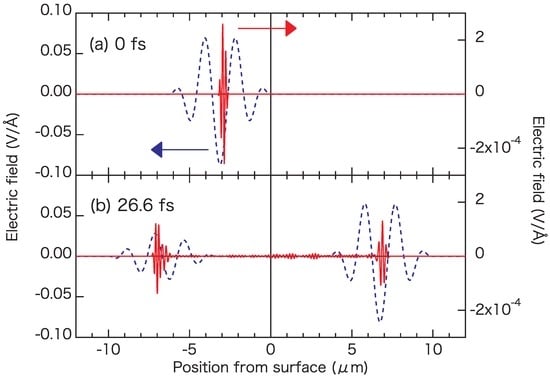 - Otobe, T.; Shinohara, Y.; Sato, A.S.; Yabana, K. Femtosecond time-resolved dynamical Franz-Keldysh effect. Phys. Rev. B 2016, 93, 045124. [Google Scholar] [CrossRef]