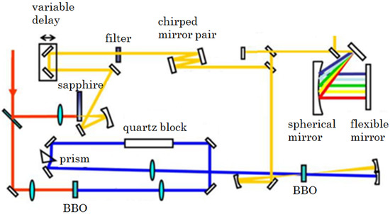 - Kobayashi, T.; Shirakawa, A. Tunable visible and near-infrared pulse generator in a 5 fs regime. Appl. Phys. B Lasers Opt. 2000, 70, S239–S246. [Google Scholar] [CrossRef]