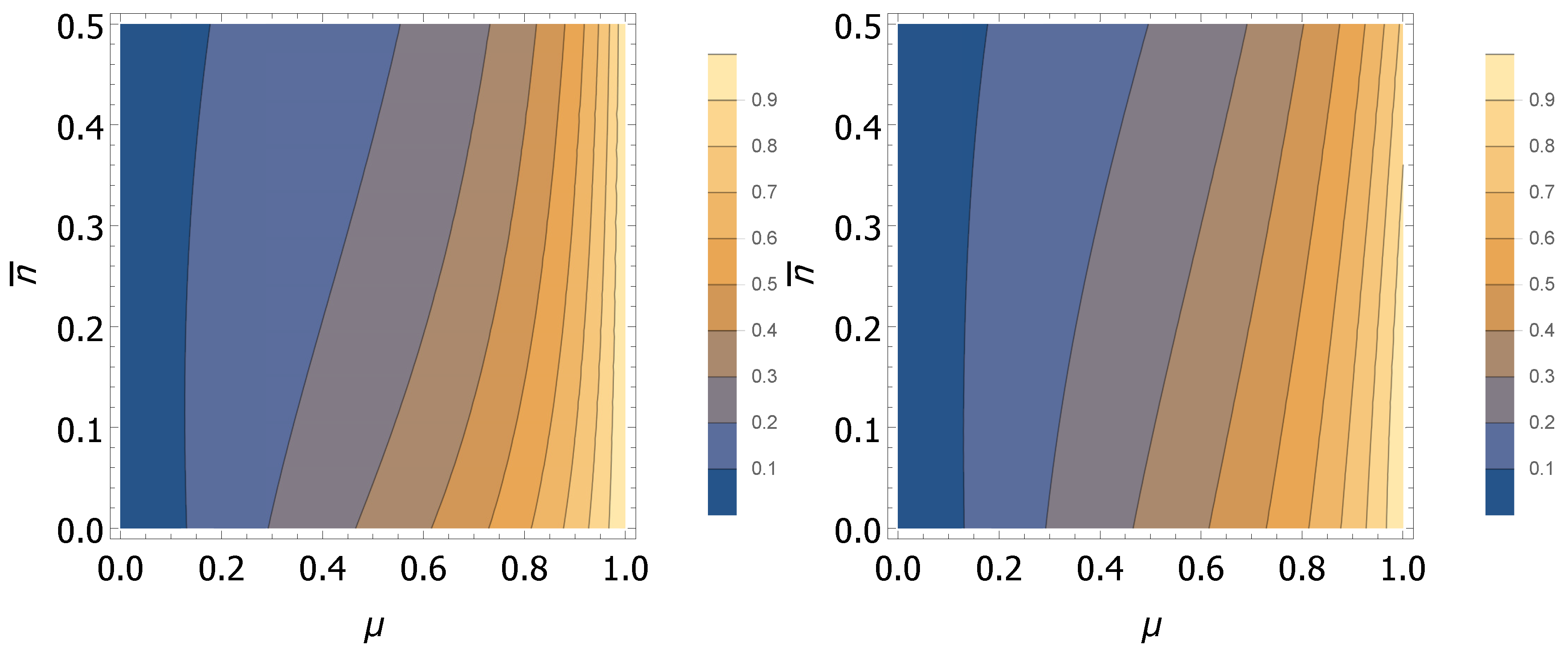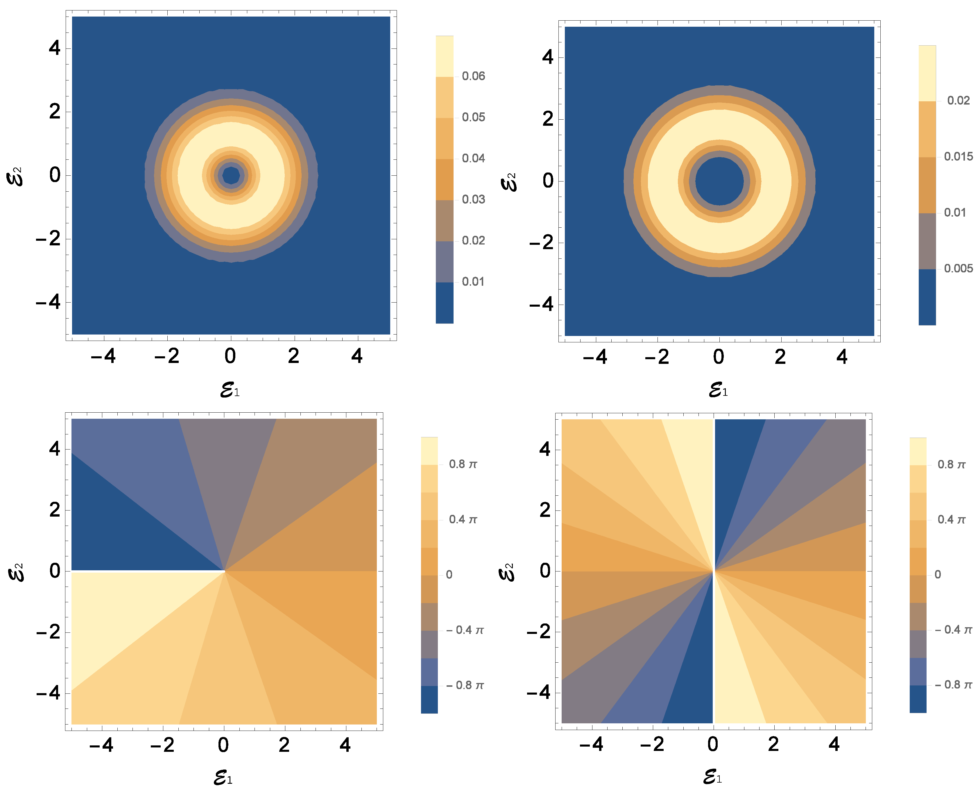 Figure 10 (left)), the difference of one photon between the output modes is hold along the distribution, obtaining an order 1 and + abstract handedness by means of Equation (