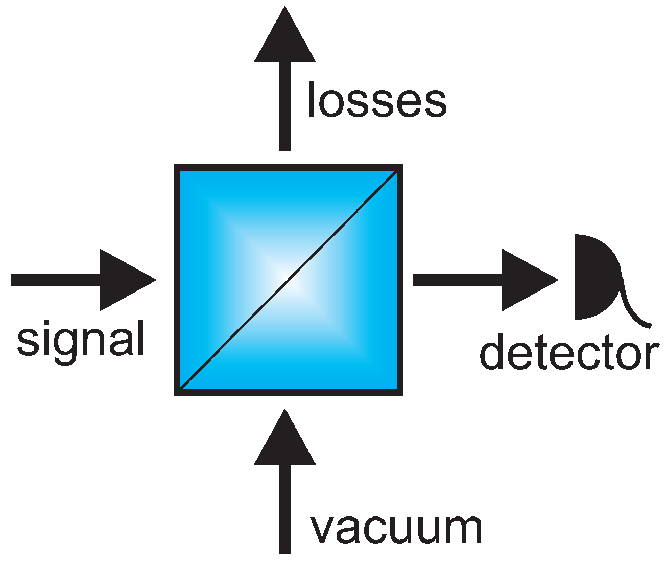 , depending on the origin of the noise, either thermal or Poissonian, which are admixed with the input signal state in the same way as in Equation (