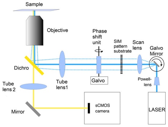 - Schropp, M.; Uhl, R. Two-dimensional structured illumination microscopy. J. Microsc. 2014, 256, 23–36. [Google Scholar] [CrossRef] [PubMed]