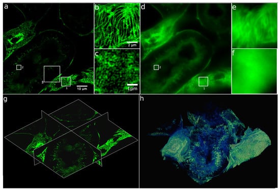 - Carrington, W.; Lynch, R.; Moore, E.; Isenberg, G.; Fogarty, K.E.; Fay, F. Super-resolution three-dimensional images of fluorescence in cells with minimal light exposure. Science 1995, 268, 1483–1487. [Google Scholar] [CrossRef] [PubMed]
