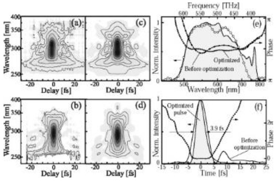 - Trebino, R. Frequency-Resolved Optical Gating: The Measurement of Ultrashort Laser Pulses; Springer: Berlin, Germany, 2002; ISBN 1-4020-7066-7. [Google Scholar]