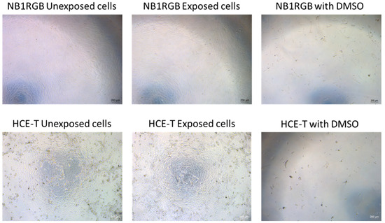 3.3. Morphological Observations of Human Corneal Cells (HCE-T) Exposed