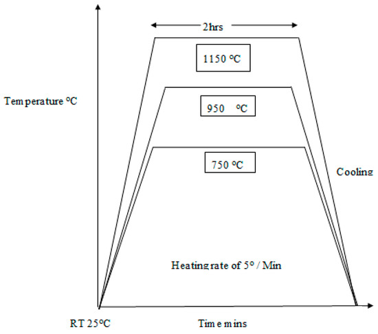 Appropriate weights of In and Ga metals were mixed and put in a clean silica ampoule closed from one side in order to produce InxGa1−xN bulk alloys with different compositions (x = 0.1, 0.3, 0.5, 0.7 and 0.9). The ampoule was then evacuated from the other side at a pressure of 10−4 Torr and sealed by welding the narrow nick which was made to insert NH3, as shown in Figure 1a. The flow rate of ammonia was 0.1 sccm for 7 min. The growth of the bulk alloys was prepared with various compositions of 0.1, 0.3, 0.5, 0.7, and 0.9 for In metal, at various temperatures of 750 °C, 950 °C and 1150 °C. The resulting alloy composite was cooled slowly to ambient temperature in order to prevent segregation, as shown in Figure 1b. The reaction schedule can be schematically represented in Figure 2 and explained by these equations as follows: