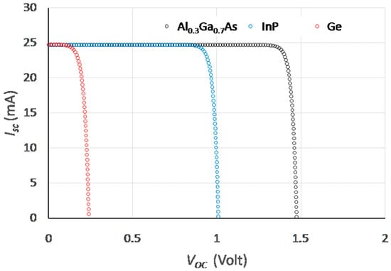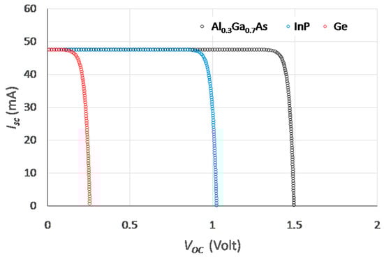 - Tiwari, B.; Hossain, M.J.; Bhattacharya, I. GaP/InGaAs/InGaSb triple junction current matched photovoltaic cell with optimized thickness and quantum efficiency. Sol. Energy 2016, 135, 618–624. [Google Scholar] [CrossRef]