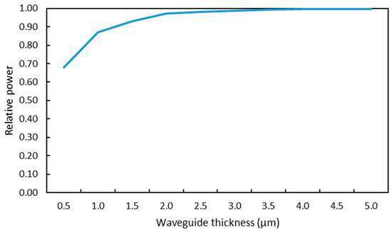 Relative optical power as a function of waveguide thickness for the 4 µm waveguide width.