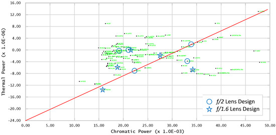 One approach for designing an athermal and also achromatic multi-element lens is through selecting the glasses from an athermal glass map [