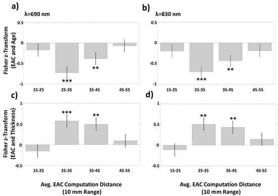 2.5. Examination of the EAC as a Function of Source–Detector Distance