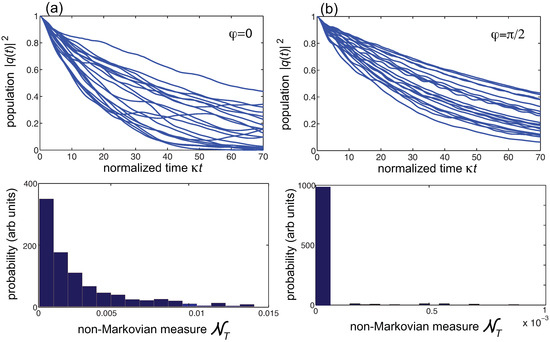 - Breuer, H.P.; Laine, E.M.; Piilo, J.; Vacchini, B. Non-Markovian dynamics in open quantum systems. Rev. Mod. Phys. 2016, 88, 021002. [Google Scholar] [CrossRef]