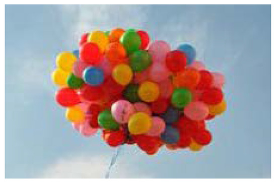 When the laser gating imaging system has different imaging conditions, the brightness and contrast of the image are also different. The target shown in Figure 4 is a cluster of balloons. Figure 5a,b shows the gating imaging of the target using the distance gating system under imaging conditions at different time of day. Figure 5a is the image obtained at night, and Figure 5b is the image obtained during the day. When imaging at night, the laser illuminates the target, and other unilluminated parts entering the ICCD can be ignored. During daytime imaging, due to the influence of sunlight, the stray light entering the ICCD greatly increases, and the brightness of the entire image will also greatly increase. It can be seen from the Figure 5a that the imaging background in Figure 5a is relatively single, and the target is more prominent in the entire image. The algorithm in Section 3.1 is used to enhance the image and the results are shown in Figure 5c. It can be seen from the Figure 5c that the contrast between the target and the background is increased, and the details of the target are also enhanced. Figure 5b is enhanced with the same parameters, and the result is shown in Figure 5d. As can be seen from Figure 5d, the effect of enhancement processing is not good. Although the image brightness increased, the image details of the target were overwhelmed. The enhancement effect is mainly related to in homomorphic filtering. How to choose the appropriate to enhancement image according to the characteristics of the image is the main content of this section.