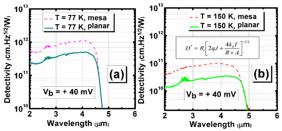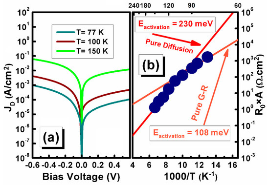 - Wu, D.; Dehzangi, A.; Li, J.; Razeghi, M. High performance Zn-diffused planar mid-wavelength infrared type-II InAs/InAs1−xSbx superlattice photodetector by MOCVD. Appl. Phys. Lett. 2020, 116, 161108. [Google Scholar] [CrossRef]