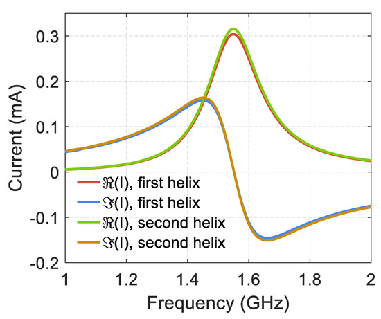 When this condition is satisfied, the electric current strength in the first and second helices can be written as