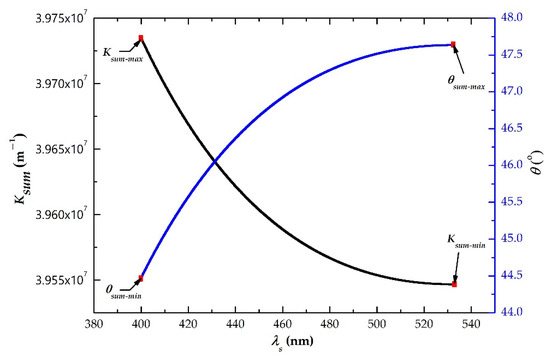 The nonlinear crystal used negative uniaxial BBO is 2 mm long, cut for type-I collinear phase-matching at θ = 47.63°. Of course, the crystal phase-matching condition also can be turned to (n(ω) and np(2ω) said the refractive index of the correlated photon and the pump) due to (ks,i and ω are, respectively, the wave number and frequency of the correlated photon, c is the photon propagation speed in a vacuum). The results show that the phase-matching condition can be regarded as the refractive index of the correlated photon in the crystal is equivalent to that of the pump. In the case that most nonlinear optical crystals in the visible are in normal dispersion, and the higher the wave frequency, the greater the refractive index, namely . Therefore, the phase-matching condition cannot be satisfied theoretically when the wave beam propagates in isotropic medium. However, for the anisotropic BBO crystal, due to the birefringence effect, two waves with different refractive indices are allowed to propagate in the same direction, and the phase matching can be realized by the effect in the normal dispersion range.