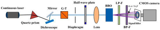 In this part, an experimental platform is built to measure the properties of the angular distribution of the correlated photons generated by a BBO crystal, which verifies the theoretical research on the non-collinear angular variation through experimental method. The layout of the experimental measurement setup is shown in Figure 5.