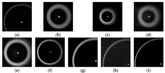 (a–i) Experimental results of the correlated photon rings with different wavelengths. (a) λ = 415 nm, (b) λ = 472 nm, (c) λ = 550 nm, (d) λ = 572 nm, (e) λ = 605 nm, (f) λ = 610 nm, (g) λ = 685 nm, (h) λ = 700 nm, (i) λ = 710 nm.