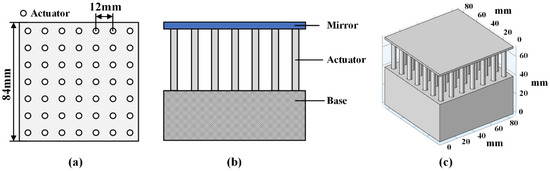 - Bonora, S. Distributed actuators deformable mirror for adaptive optics. Opt. Commun. 2011, 284, 3467–3473. [Google Scholar] [CrossRef]