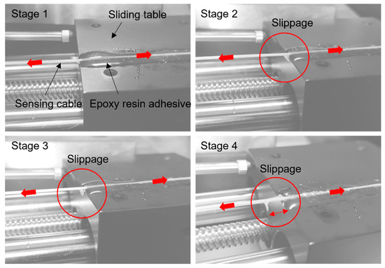 Sensing cable slippage from the cured adhesive.