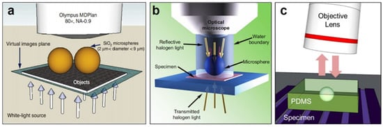 - Upputuri, P.K.; Pramanik, M. Microsphere-aided optical microscopy and its applications for super-resolution imaging. Opt. Commun. 2017, 404, 32–41. [Google Scholar] [CrossRef]
